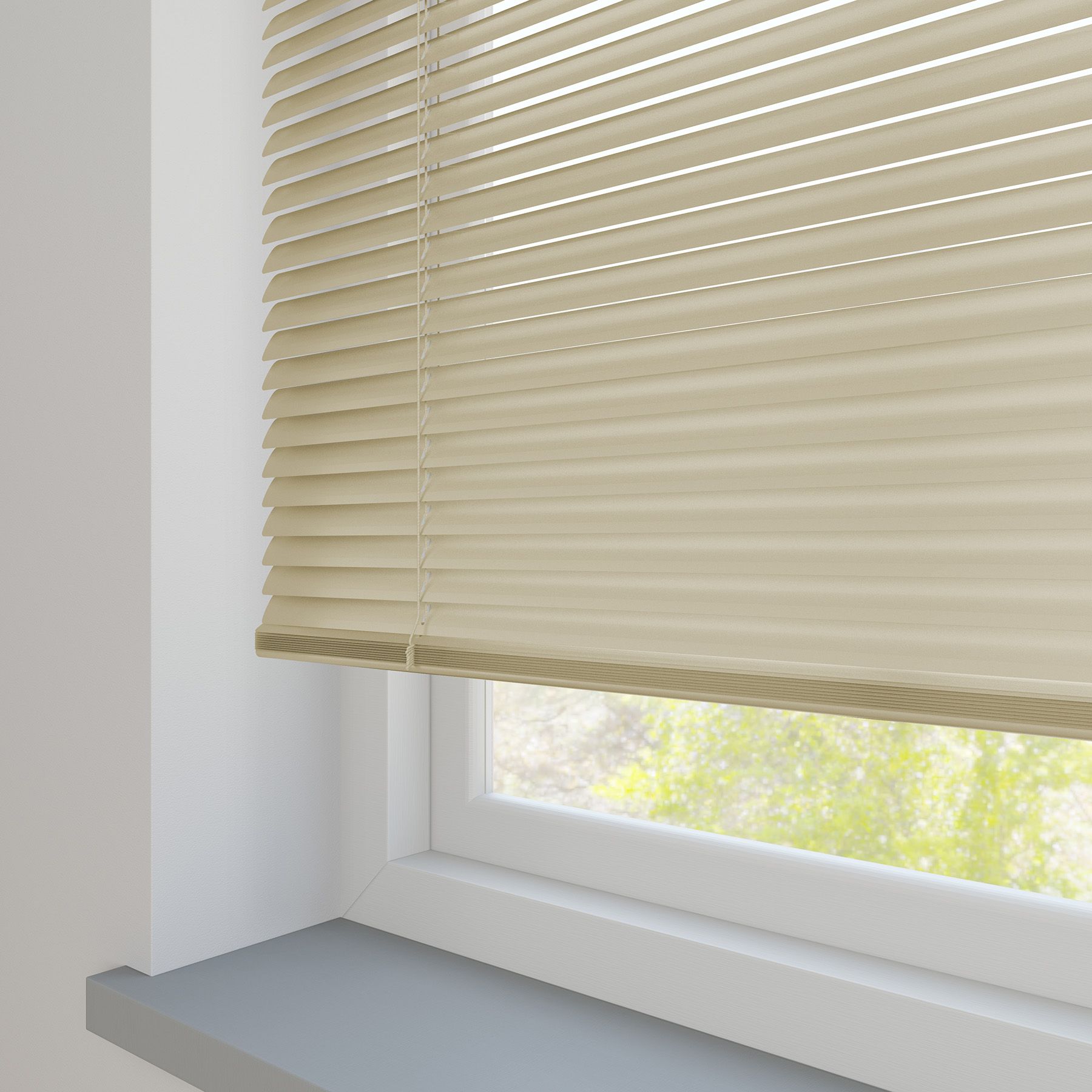 Our Aluminium blinds feature a sturdy, color-coded headrail matching the colour of your slats. For blinds with 25mm slats, the headrail dimensions are 24mm in height and 25mm in depth.