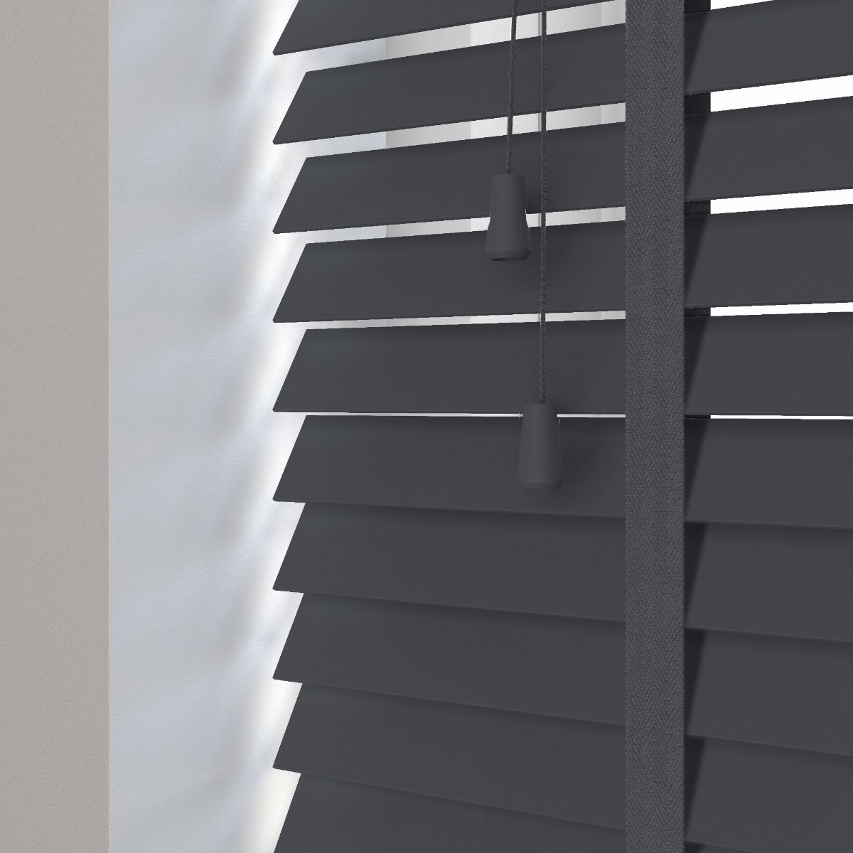 Our wooden and faux wood blinds feature a sturdy, color-coded headrail matching the color of your slats. For blinds with 50mm slats, the headrail dimensions are 42mm in height and 59mm in depth.