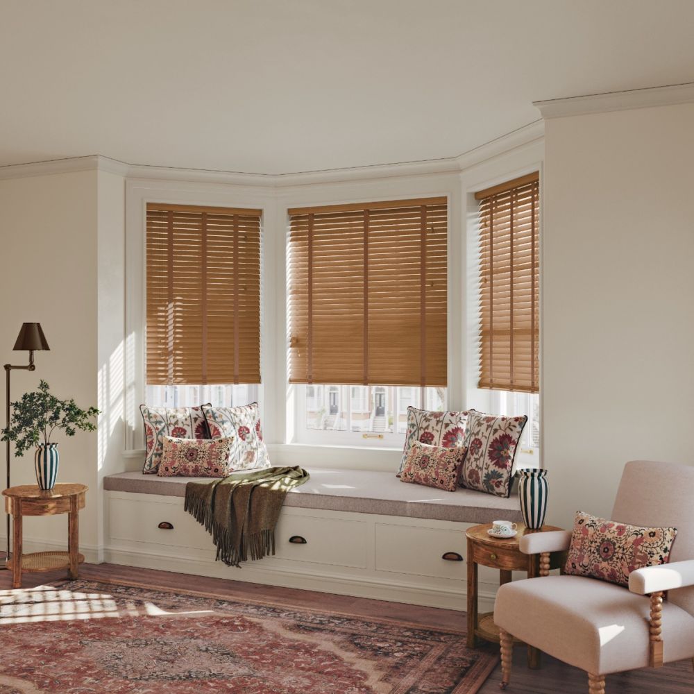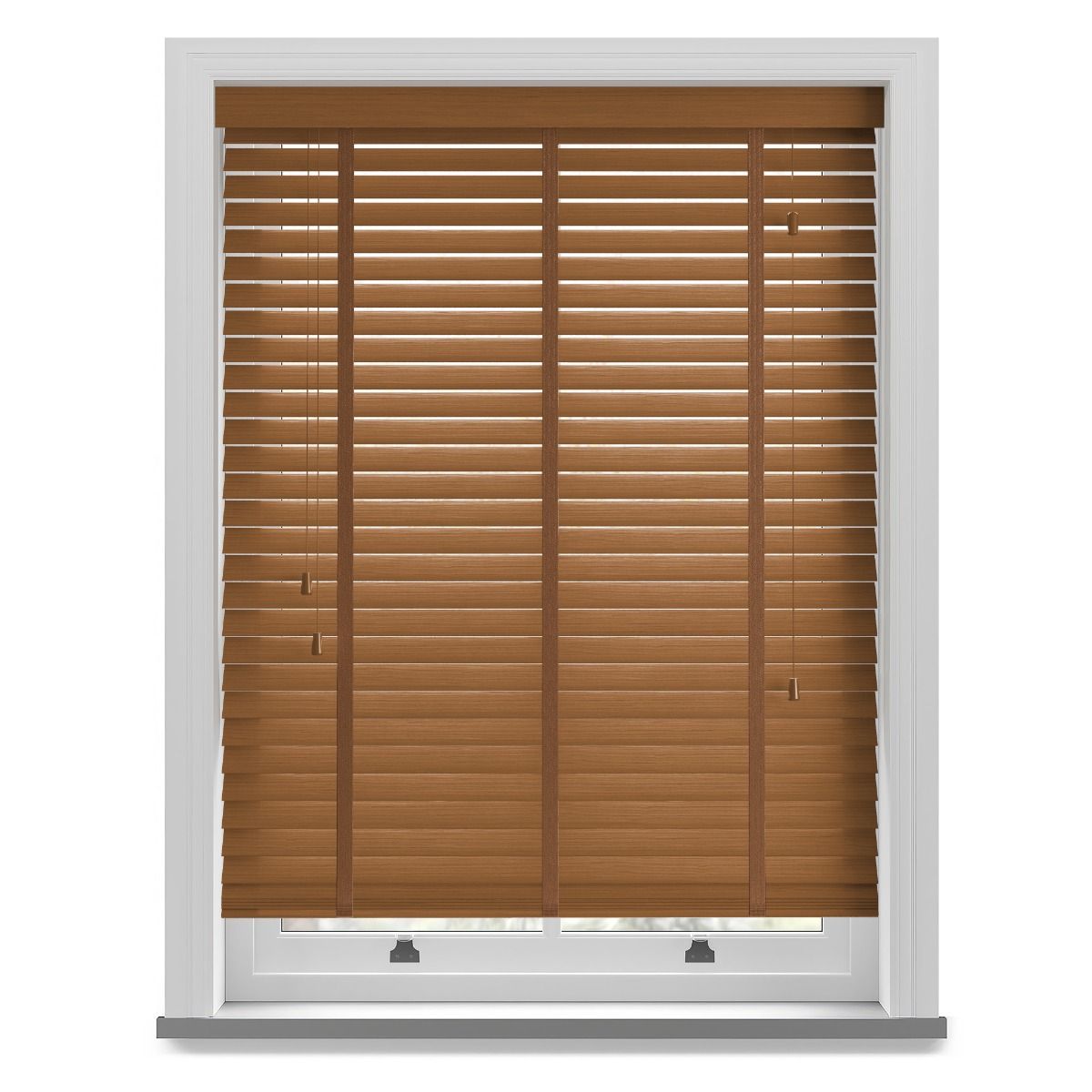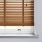 Enhance the ambiance of any room with the Amber Grained Taped Faux Wood Blind, meticulously designed to mimic the warm aesthetic of medium wood. This faux wood creation features a robust grained effect that captivates the eye while offering the practical benefits of easy maintenance and durability. Available in slat sizes of 35mm and 50mm, these blinds are versatile for both standard and bay windows, ensuring a seamless fit in a variety of settings. Perfect for spaces like bathrooms, bedrooms, kitchens, and offices, these blinds provide enhanced privacy and light filtering, alongside notable thermal properties to help maintain a comfortable indoor temperature. The waterproof and easy-wipe nature of the material makes them exceptionally suitable for environments prone to moisture without compromising on style.