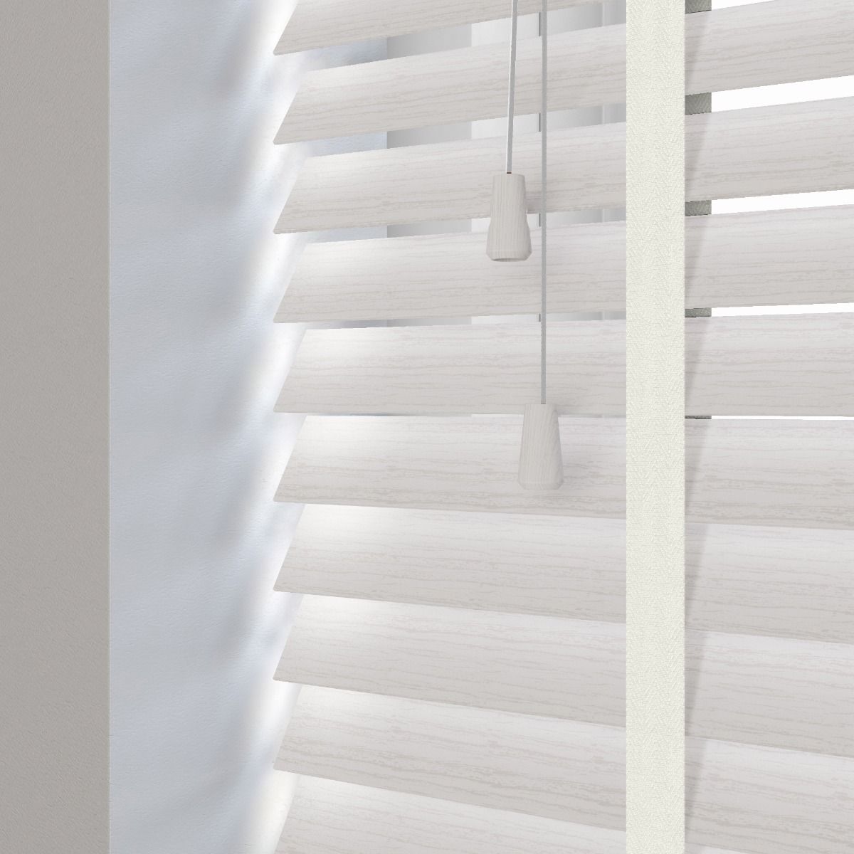 Elegance combines with functionality in our Arctic Oak Grained Taped Faux Wood Blind. Designed to enhance any space, including bathrooms, bedrooms, living areas, and offices, this faux wood blind in a sophisticated cream colour boasts a natural oak grain effect that adds warmth and style. The 50mm slats not only provide excellent light filtering options but also ensure privacy when needed. Remarkably durable and easy to maintain, the blind features a water-resistant finish making it an ideal choice for environments prone to moisture. Its thermal properties help in maintaining room temperature, contributing to energy efficiency. Additionally, the taped finish not only increases the blind's strength and durability but also complely enhances its visual appeal. This product is wonderfully suited for both bay and standard windows, offering a seamless blend of beauty and practicality.