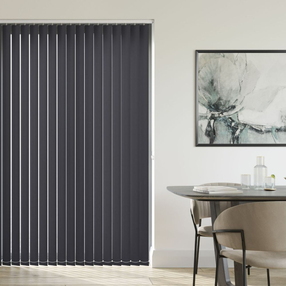 Embrace the balance of design and functionality with the Bella Blackout Black Vertical Blind. Crafted from durable polyester, these blinds are specifically designed for versatile usage across various spaces including bedrooms, dining rooms, and offices. The black colour enhances a sophisticated feel, perfectly complementing any decor style from modern to traditional. With a plain yet textured appearance, these vertical blinds are more than just visually appealing; they offer enhanced privacy and a blackout quality essential for controlling natural light. Whether installed in a bay window or a standard window, these blinds make adjusting light and maintaining your environment's comfort effortless. Its properties make it an especially apt choice for settings requiring minimal light intrusion like nurseries or media rooms.