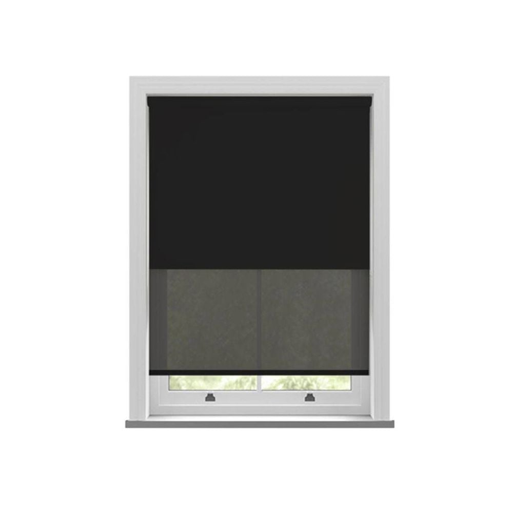 The Bella Noir and Echo Noir Double Roller Blind unites deep black tones with sleek modern design.