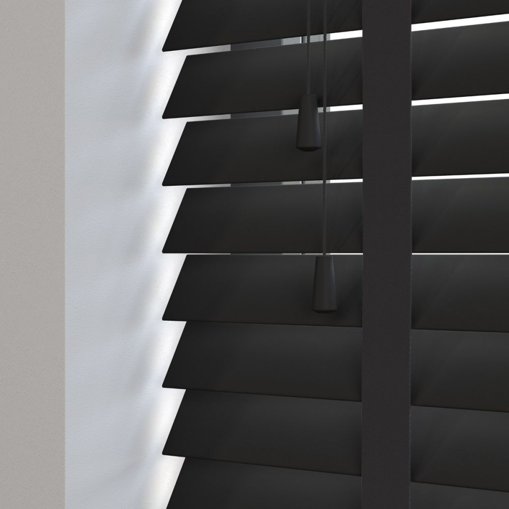 Crafted from authentic real wood with a sophisticated matt finish, this Carbon Taped Real Wood Blind combines aesthetics with functionality. Available in an elegant black hue, it complements various room settings including bedrooms, dining rooms, living rooms, and offices. These blinds feature a light-filtering design that softly diffuses daylight while ensuring privacy and thermal insulation. The easy-wipe surface makes maintenance straightforward, allowing these blinds to always look their best. Depending on the dimensions and aesthetic requirements of your space, choose from slat sizes of 35mm, or 50mm, tailored to fit both bay and standard windows seamlessly. This product not only enhances the beauty of your windows but also promises a blend of durability and practicality, making it a smart choice for any interior.