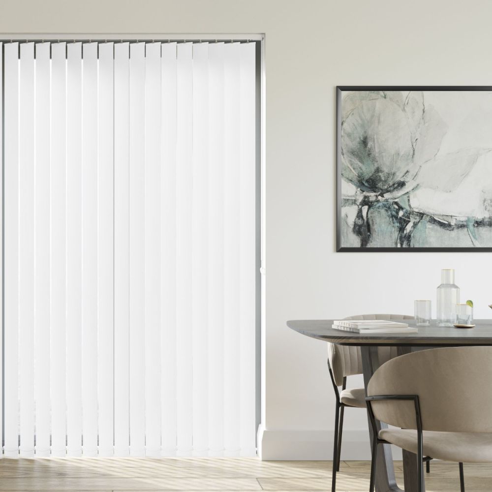 Enhance your living or work space with the Classic White Vertical Blind, designed to merge functionality with style seamlessly. Available in a crisp white shade, this blind is constructed from polyester, known for its durability and ease of maintenance. Crafted to filter light gently, it provides an optimal balance of privacy and natural illumination. The texture adds a subtle intrigue while maintaining a sleek and unassuming appearance, making it perfect for any room – be it a bedroom, dining area, living room, or office setting. Its versatility extends to various window types, including bay and standard windows, ensuring a tailored fit that enhances any decor. The Scope Bare Vertical Blind is an excellent choice for those seeking a practical yet sophisticated window dressing solution.