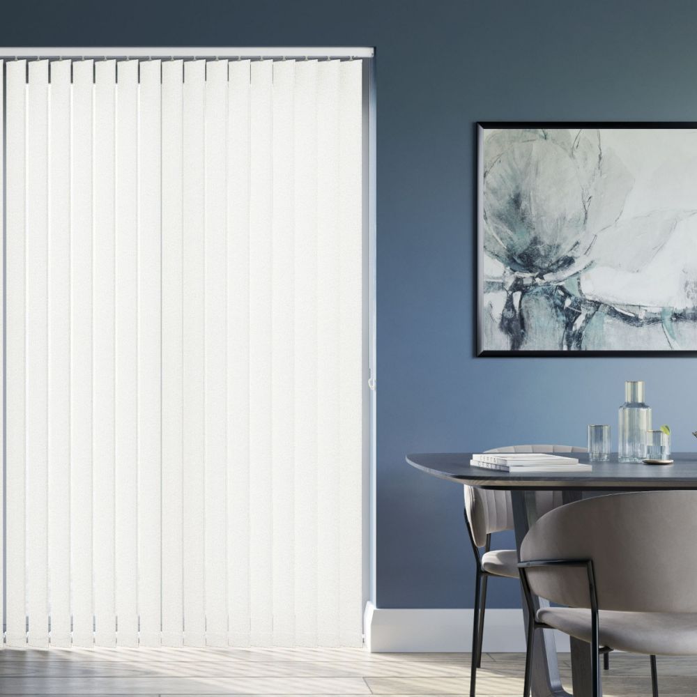 Crafted with the utmost attention to detail, the Devon Whisper White Vertical Blind offers a sleek and modern solution for your windows, tailored to enhance any room including bedrooms, dining areas, living rooms, nurseries, and offices. This vertical blind is fashioned from polyester, a durable and easy-to-maintain material, ensuring it stands up to the demands of any busy environment. Its light filtering quality bathes your space in soft, natural light while providing the necessary privacy. The blind features a subtle texture that adds an element of sophistication without overwhelming the space. Its crisp white colour ensures it will complement any decor style, making it a versatile choice for both traditional and contemporary settings. Perfect for both standard and bay windows, this blind is designed for easy use and seamless integration into your space.