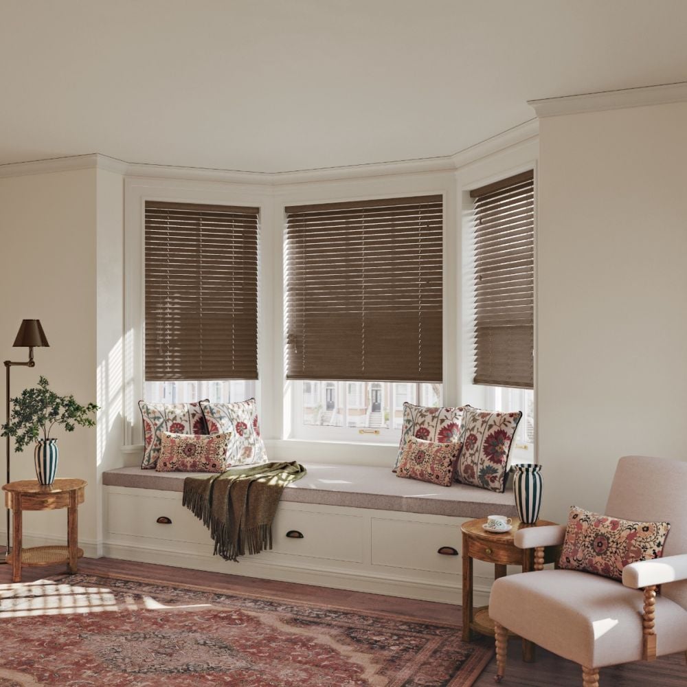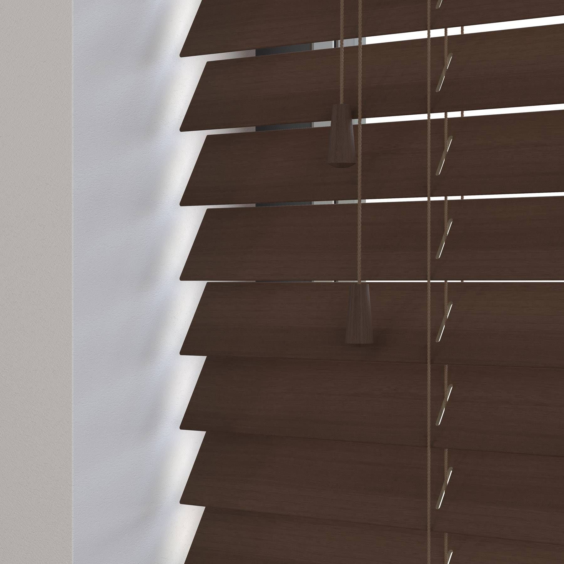 Crafted from authentic, sustainably sourced wood, our Fired Walnut Real Wood Blind introduces a touch of natural elegance to any room. Featuring a rich, dark wood finish with a beautifully grained texture, these blinds provide a sophisticated aesthetic that complements a wide range of interiors, from the bedroom and living room to the dining area and office. With a slat size of 50mm, they offer optimal light filtering, allowing you to control the ambiance of your space effortlessly. Our wooden blinds are designed for both bay and standard windows, ensuring a perfect fit for various architectural styles. Additionally, they are easy to maintain, requiring just a simple wipe to keep them looking pristine. Enjoy enhanced privacy and improved thermal efficiency, making them a smart choice for your living environment.