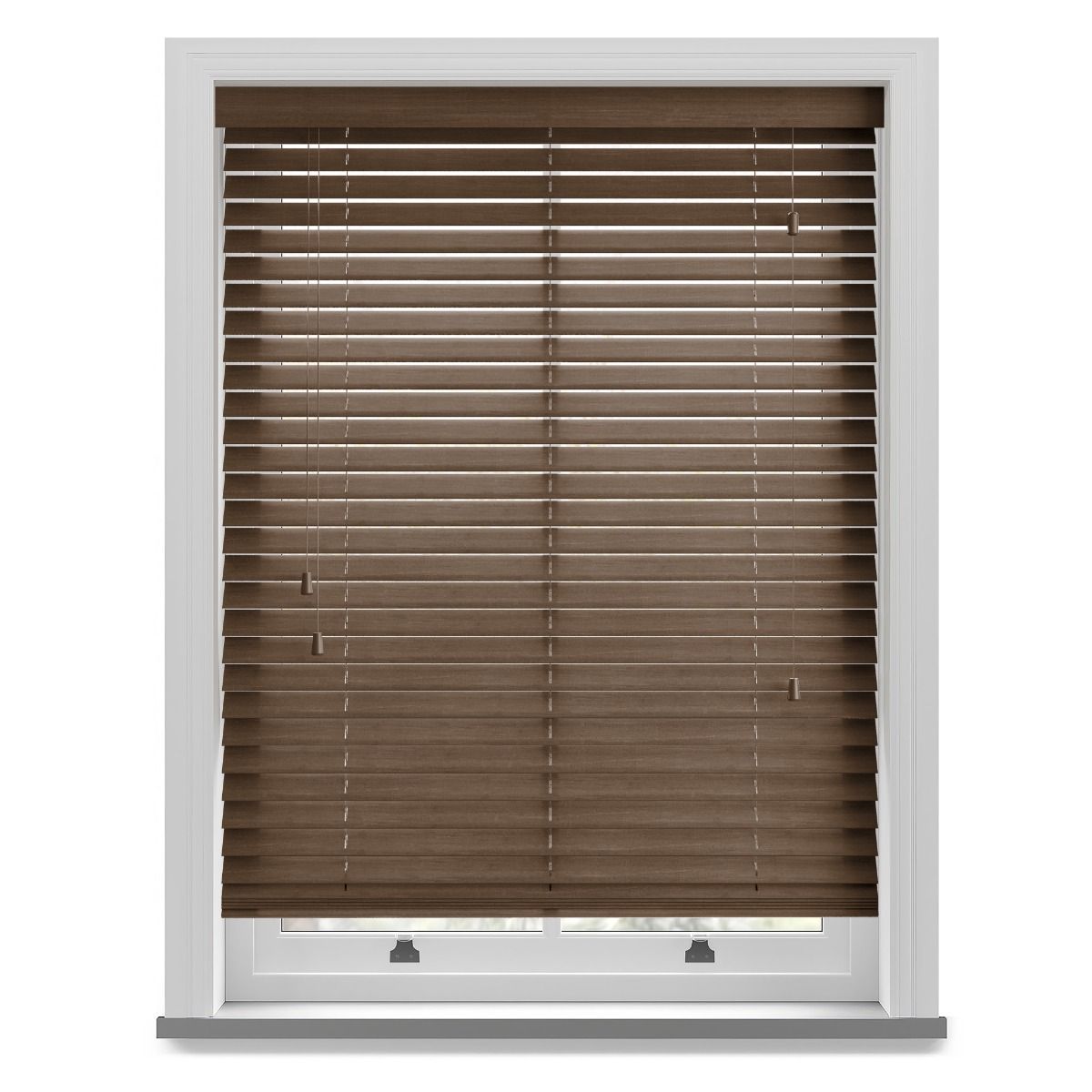Our wooden and faux wood blinds feature a sturdy, color-coded headrail matching the color of your slats. For blinds with 50mm slats, the headrail dimensions are 42mm in height and 59mm in depth.