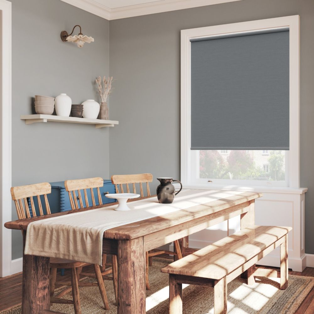 This dark grey blackout roller blind features a refined woven texture for added depth and style. Completely blocking external light while ensuring privacy, it offers a sleek, modern look - perfect for bedrooms, media rooms, and contemporary living spaces.