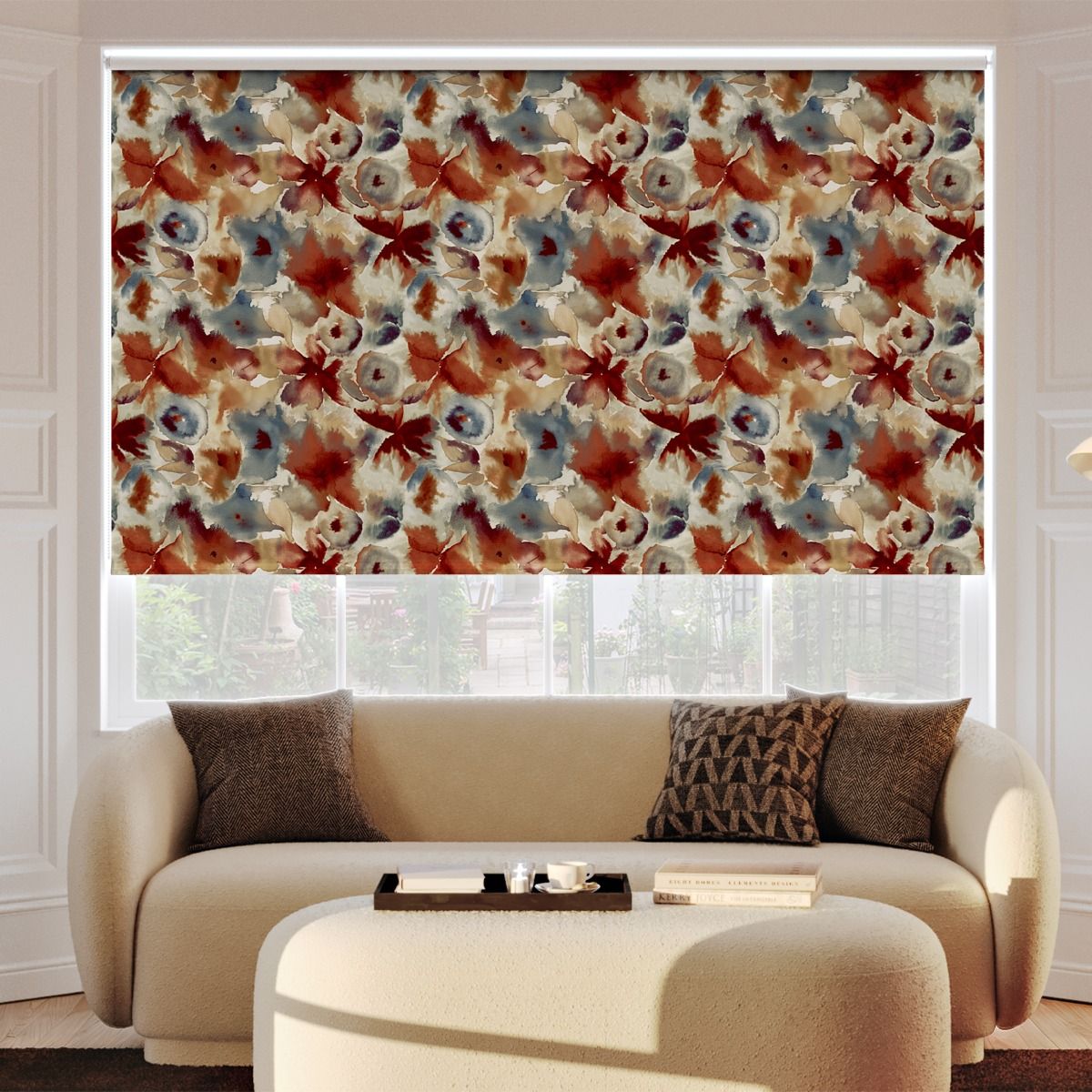 Harlequin Flores, Rust/Ruby/Nordic Blue Blackout Roller Blind