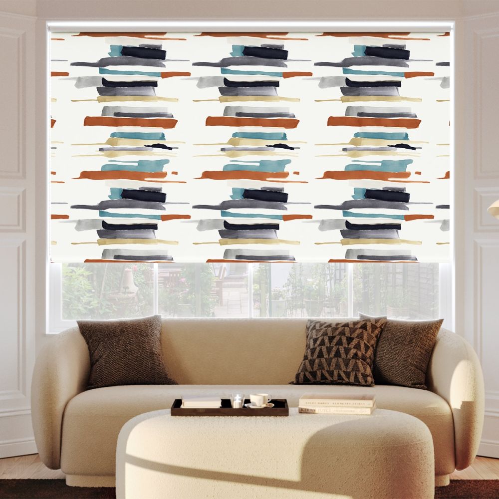 Harlequin Zeal Watercolour, Navy/Denim/Tan Blackout Roller Blind