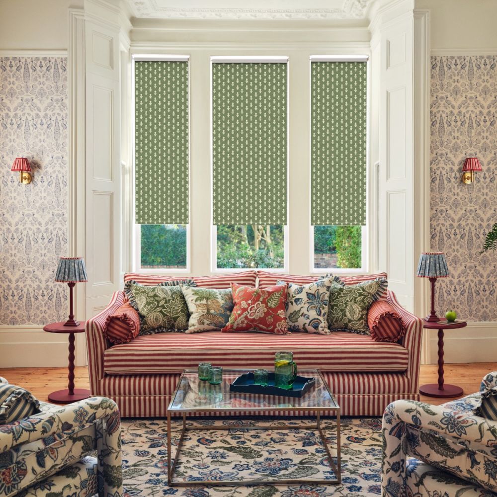 JL x Sanderson Dabu Blackout, Forest Green Roller Blind
