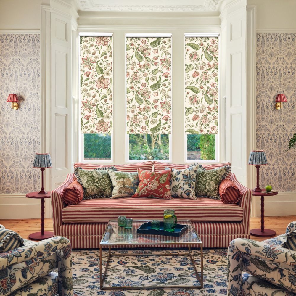 Bring character and comfort to your space with the blackout JL x Sanderson Newnham Courtney, Alum/Split Pea Roller Blind, combining a detailed heritage-inspired botanical print with reliable light-blocking performance.