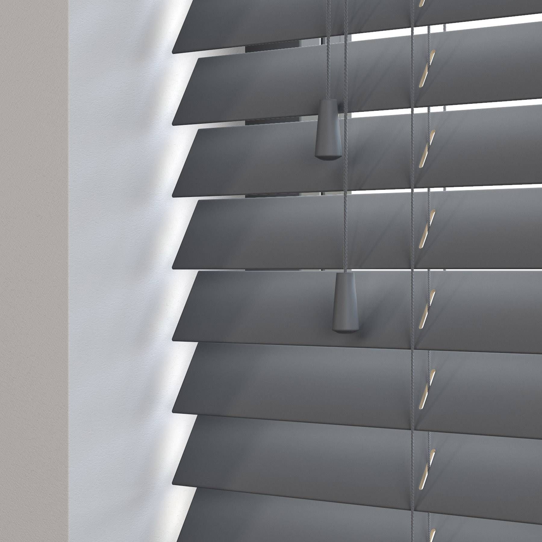 Crafted from real wood with a refined matt finish, the Khol Real Wood Blind is a superb choice for enhancing the ambiance of various spaces including bedrooms, dining rooms, living areas, and offices. Available in a sleek grey shade, this blind comes in slat widths of 35mm, and 50mm, tailored to fit both standard and bay windows effortlessly. The light-filtering property ensures a soft diffusion of daylight, creating a warm and inviting atmosphere. Additionally, this product offers beneficial features such as ease of cleaning, effective privacy control, and enhanced thermal insulation, all without the use of tapes. The Khol Real Wood Blind combines functionality with aesthetic appeal, making it a smart addition to any room.