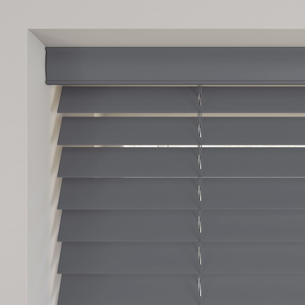Our wooden and faux wood blinds feature a sturdy, color-coded headrail matching the color of your slats. For blinds with 50mm slats, the headrail dimensions are 42mm in height and 59mm in depth.