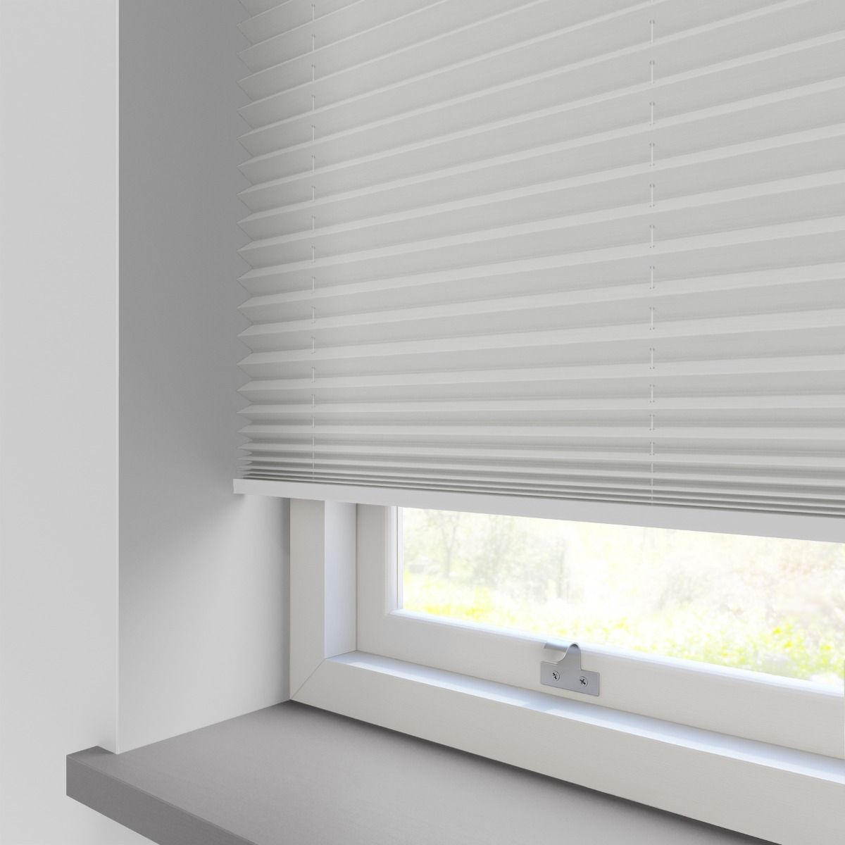 These pleated blinds are operated using a handle. Standard pleated blinds with side guides come with one handle, while those wider than 1200mm are equipped with two handles. You can choose between the Top Down – Bottom Up or Bottom Up system for all our pleated blinds.
