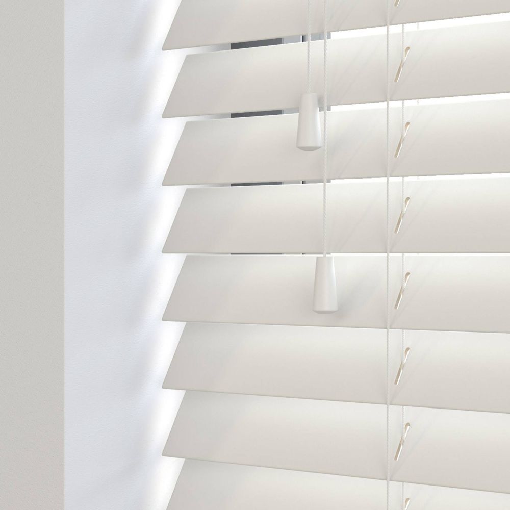 Our wooden and faux wood blinds feature a sturdy, color-coded headrail matching the color of your slats. For blinds with 50mm slats, the headrail dimensions are 42mm in height and 59mm in depth.