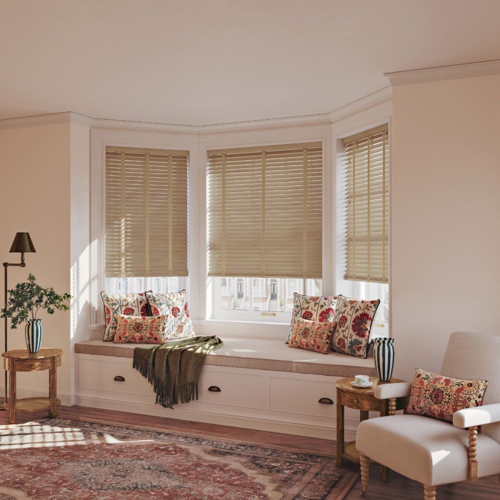 The Narra Oak Taped Real Wood Blind features a light, warm oak finish with a gently textured grain.