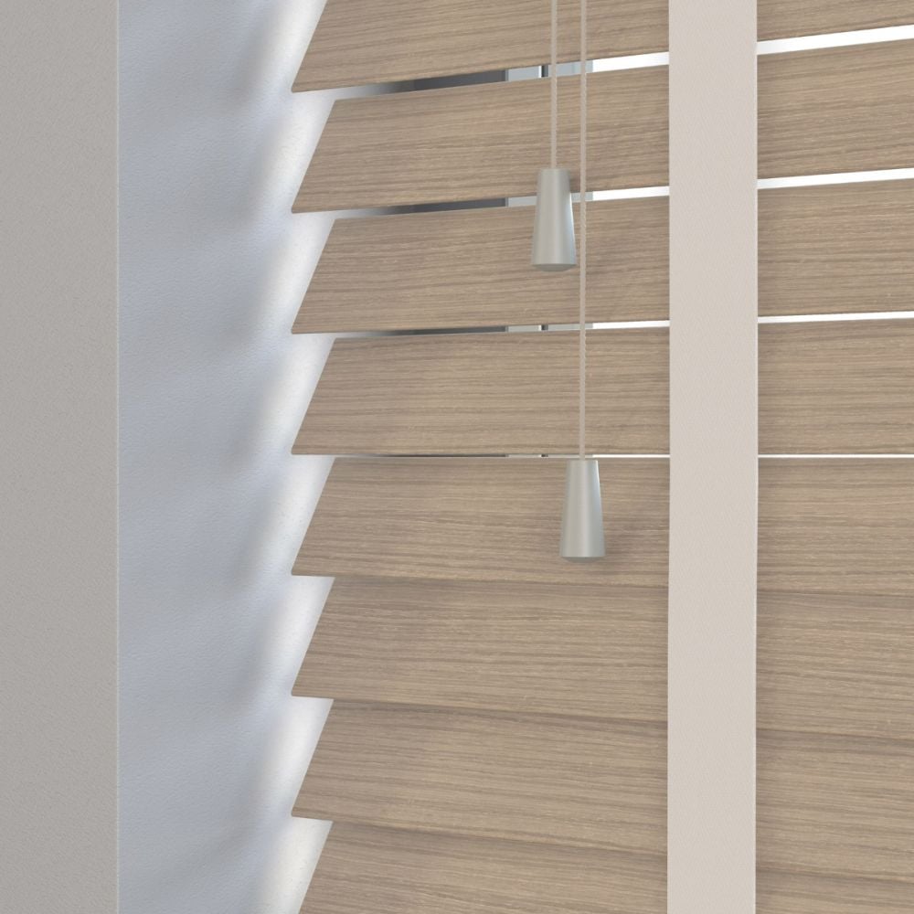 Our wooden and faux wood blinds feature a sturdy, color-coded headrail matching the color of your slats. For blinds with 50mm slats, the headrail dimensions are 42mm in height and 59mm in depth.