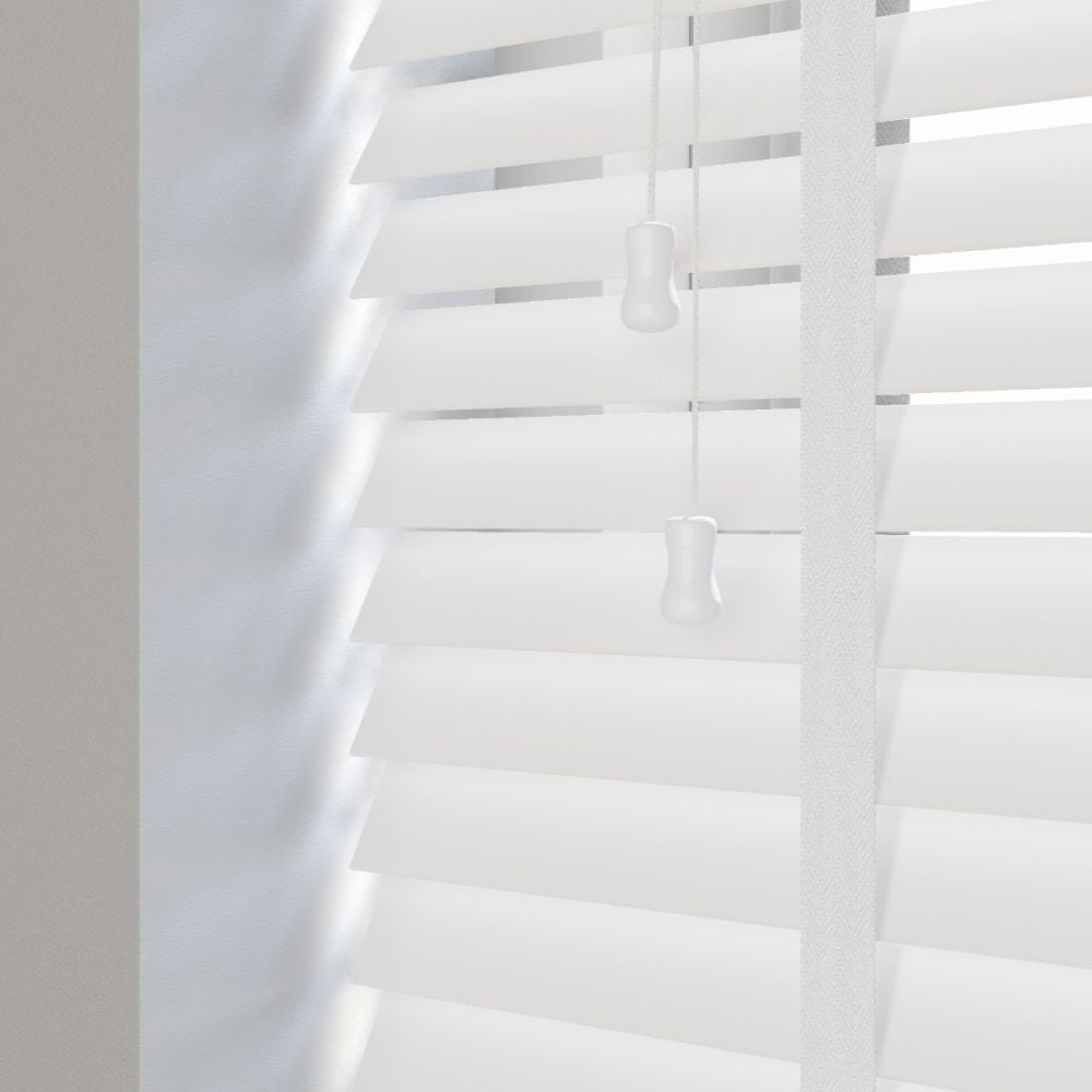 Our wooden and faux wood blinds feature a sturdy, color-coded headrail matching the color of your slats. For blinds with 50mm slats, the headrail dimensions are 42mm in height and 59mm in depth.