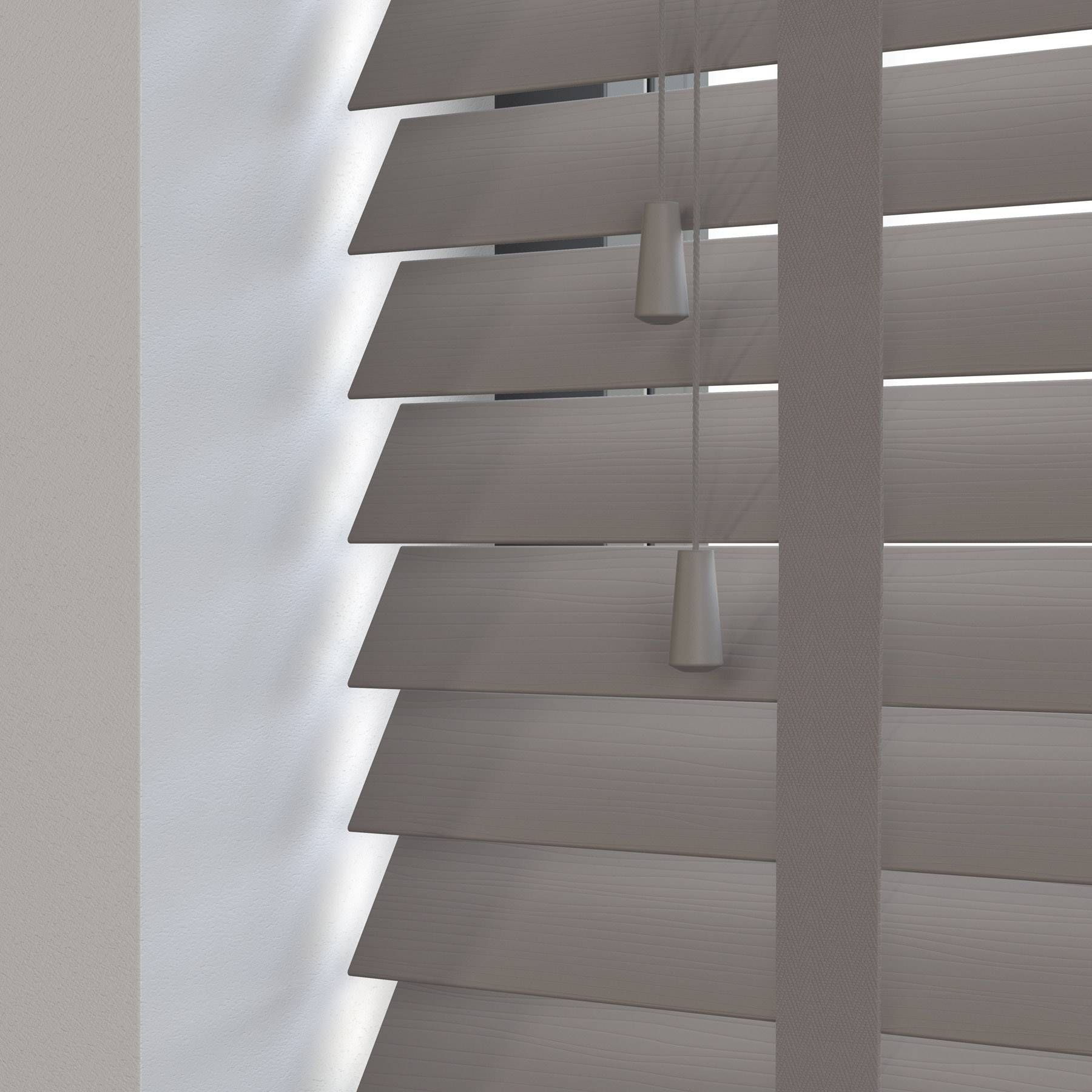 The Orion Grained Taped Faux Wood Blind, in a sophisticated grey hue, offers a blend of functionality and elegance, making it an ideal addition to various rooms including bathrooms, bedrooms, dining rooms, kitchens, living rooms, and offices. Crafted from durable faux wood with a lovely grained effect, this blind combines the classic aesthetics of wood with enhanced practical features. It is particularly designed to be waterproof and thermal, which preserves warmth and withstands humid conditions effectively. Its light-filtering opacity ensures privacy while allowing a gentle diffusion of daylight. Easy to maintain, these blinds require just a simple wipe to keep them looking pristine. Available in slat sizes of 35mm and 50mm, they fit well with both bay and standard windows, ensuring they integrate seamlessly into your window space.