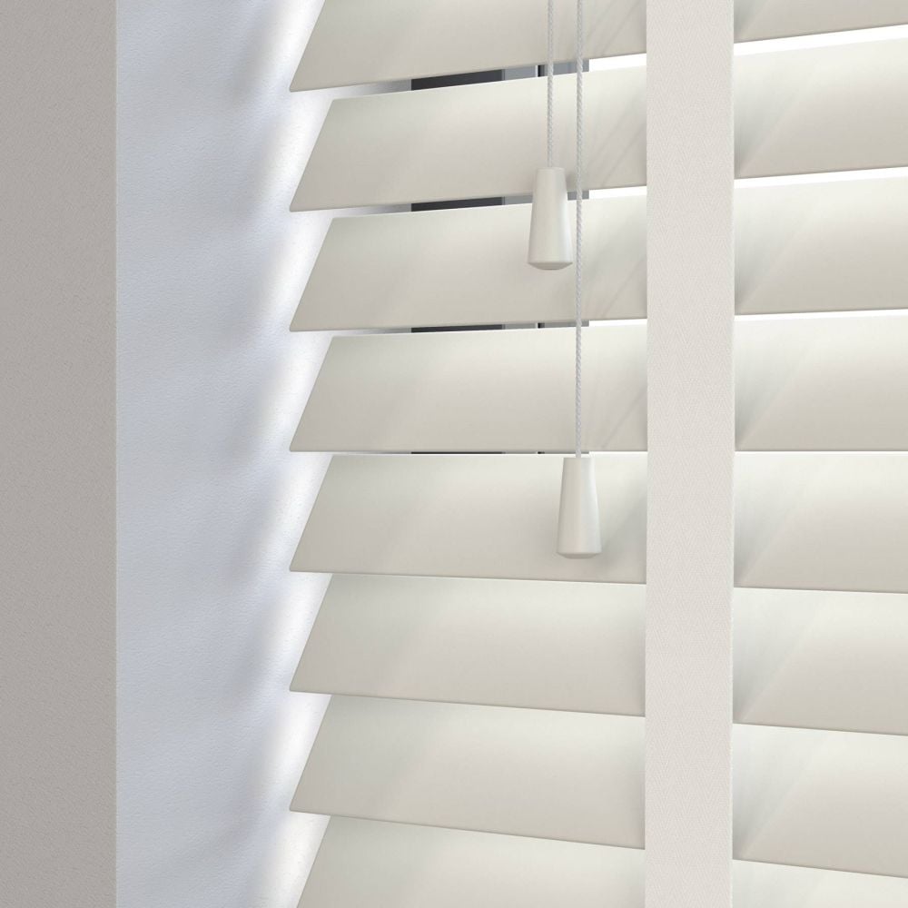 Our wooden and faux wood blinds feature a sturdy, color-coded headrail matching the color of your slats. For blinds with 50mm slats, the headrail dimensions are 42mm in height and 59mm in depth.
