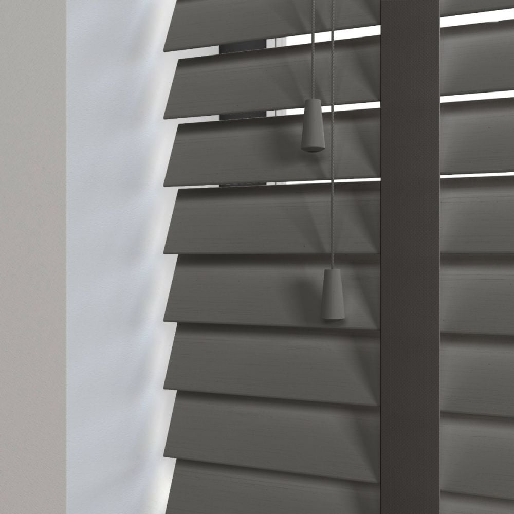 Our wooden and faux wood blinds feature a sturdy, color-coded headrail matching the color of your slats. For blinds with 50mm slats, the headrail dimensions are 42mm in height and 59mm in depth.