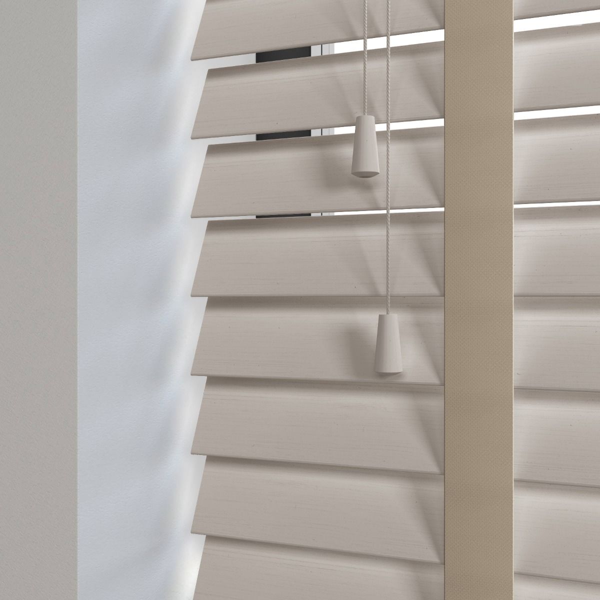 Our wooden and faux wood blinds feature a sturdy, color-coded headrail matching the color of your slats. For blinds with 50mm slats, the headrail dimensions are 42mm in height and 59mm in depth.