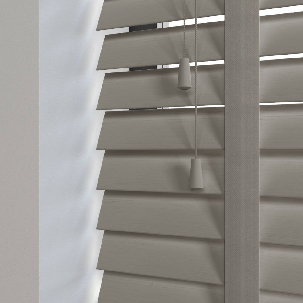 Our wooden and faux wood blinds feature a sturdy, color-coded headrail matching the color of your slats. For blinds with 50mm slats, the headrail dimensions are 42mm in height and 59mm in depth.