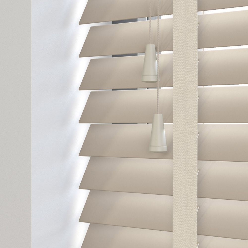 Our wooden and faux wood blinds feature a sturdy, color-coded headrail matching the color of your slats. For blinds with 50mm slats, the headrail dimensions are 42mm in height and 59mm in depth.