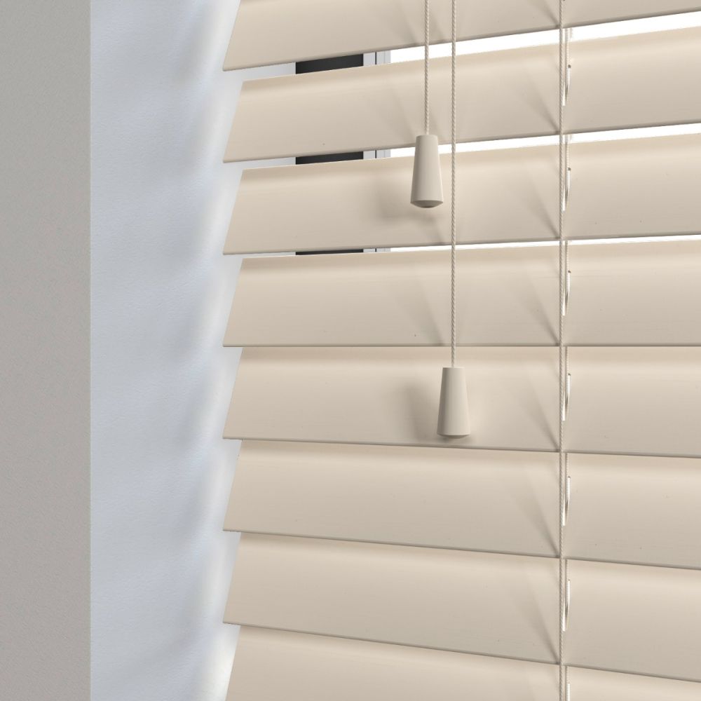 Our wooden and faux wood blinds feature a sturdy, color-coded headrail matching the color of your slats. For blinds with 50mm slats, the headrail dimensions are 42mm in height and 59mm in depth.