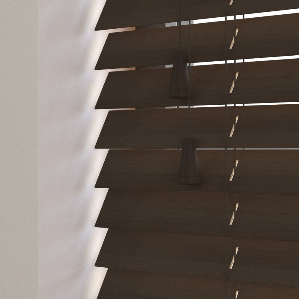 Our wooden and faux wood blinds feature a sturdy, color-coded headrail matching the color of your slats. For blinds with 50mm slats, the headrail dimensions are 42mm in height and 59mm in depth.