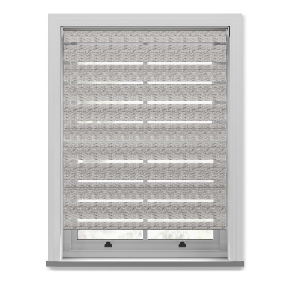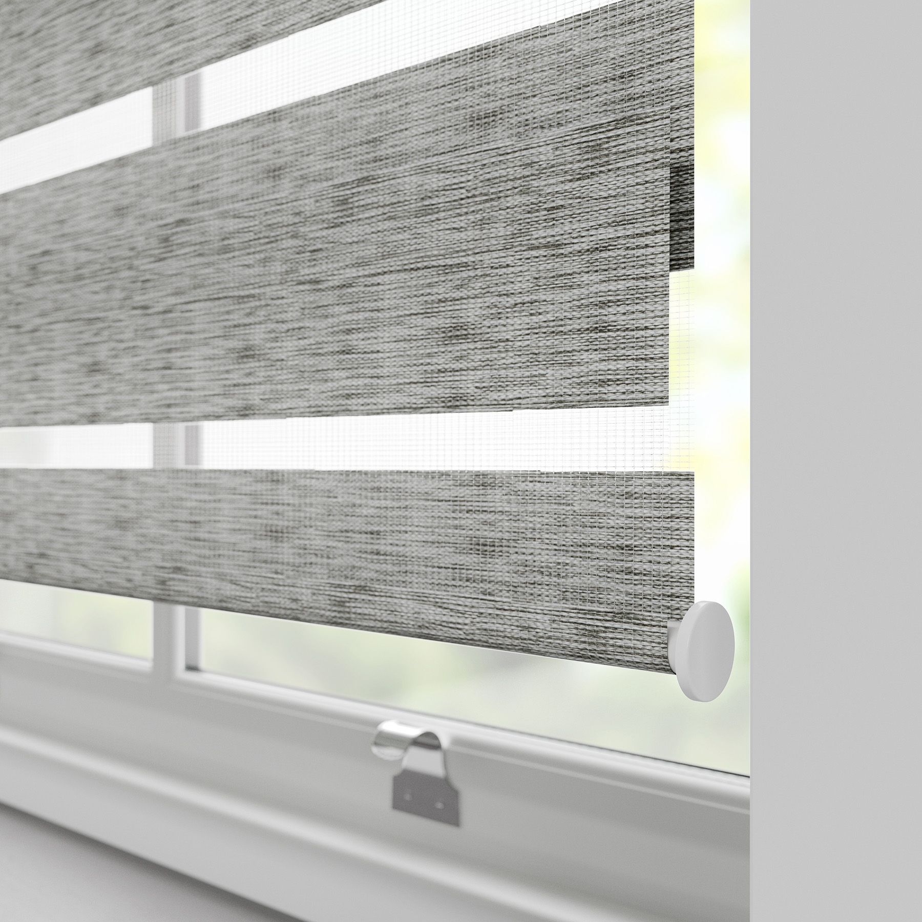 Experience a harmonious blend of functionality and style with the Rift Fossil Day and Night Blind. Designed primarily for use in dining rooms, living rooms, and office settings, this blind features a sophisticated grey colour that compleates a modern and minimalist aesthetic. Crafted from 100% polyester, the fabric effectively balances light filtering and privacy, ensuring a well-lit yet secluded space. The unique day and night mechanism allows for an easy transition from transparent to opaque, providing versatility in light control throughout the day. Whether installed in a bay window or a standard window, the plain, sleek design integrates seamlessly into any decor, offering both practical utility and a touch of elegance. Tailored to meet your needs for privacy and light control, this blind is a smart choice for refining any room's atmosphere.