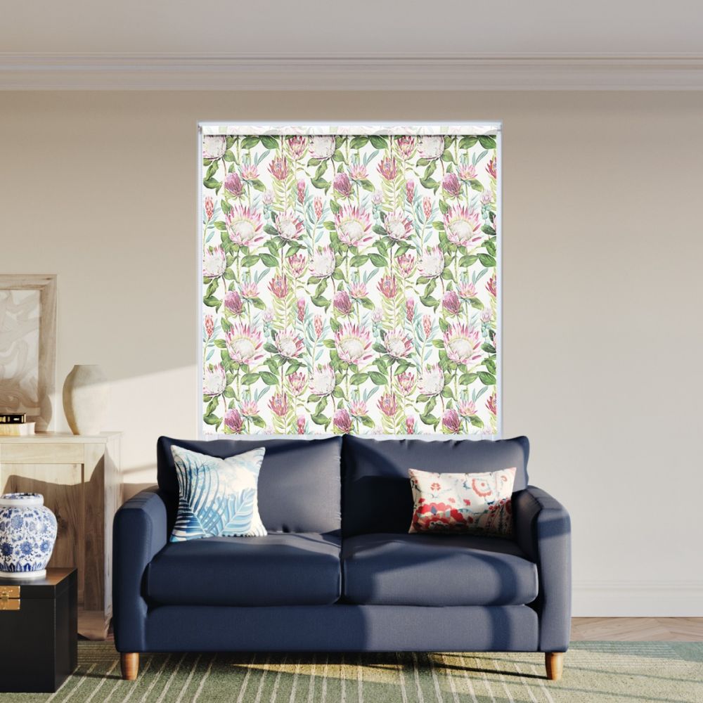 Taken from a 1971 Sanderson archive design, this watercolour celebrates the bold beauty of the iconic South African King Protea flower. Pinks, blues, and greens mix together for a look that’s striking without being overpowering. Crafted for John Lewis in our dimout fabric, it lets the light filter through softly, keeping rooms bright but calm.