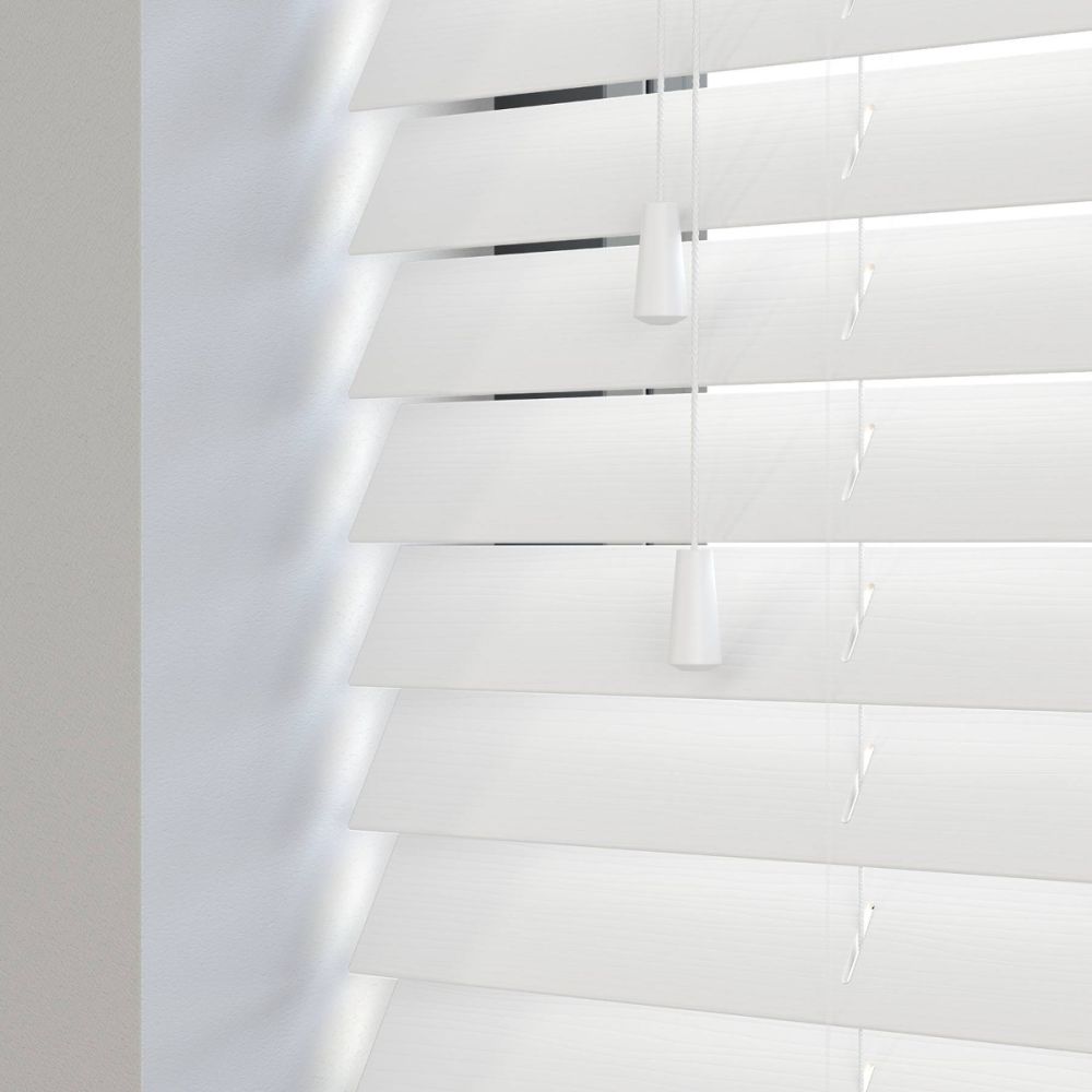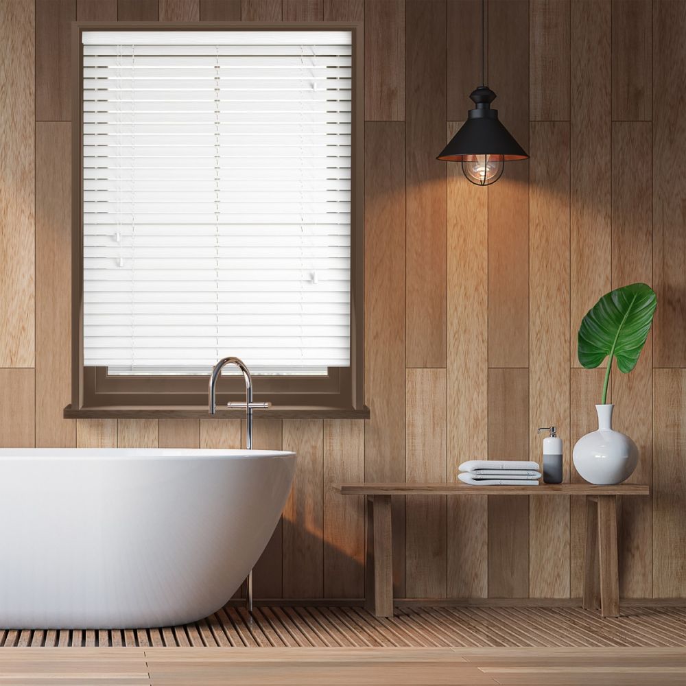 Crafted meticulously from faux wood with a sophisticated grained effect, the Serene Grained Faux Wood Blind offers a stylish and practical window dressing solution for any room. Whether destined for the humidity of a bathroom, the privacy of a bedroom, or the vibrancy of a living room, this versatile blind promises durability and functionality. With a master finish that mimics real wood and master properties including easy-wipe surfaces, waterproof capabilities, and thermal insulation, it stands as an exemplary choice for maintaining privacy while filtering light gently into your space. Available in a classic white colour that complements any decor, and with slat sizes of 35mm or 50mm to suit your preference, the Serene Blind blends every environment seamlessly. Moreover, its suitability for both bay and standard windows ensures a perfect fit for diverse architectural styles.