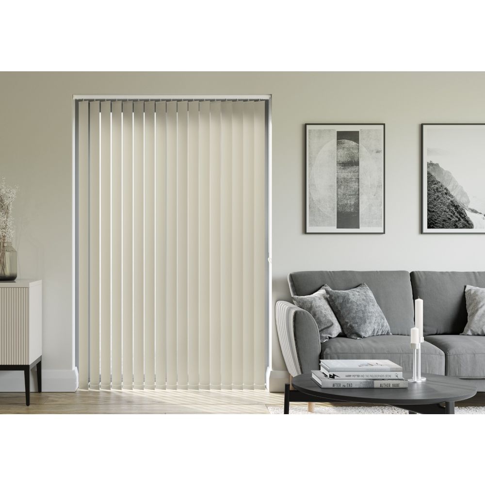Experience the soothing ambiance of the Soft Beige Vertical Blind, perfect for creating a serene and private atmosphere in spaces such as bedrooms, dining rooms, living rooms, and offices. These blinds are crafted from polyester, a practical choice ensuring durability and ease of maintenance. The cream color adds a soft, neutral tone that compleasily with any decor style, while the light-filtering fabric gently diffuses daylight, enhancing comfort without sacrificing brightness. The vertical design features both plain and textured patterns, offering an elegant simplicity that complements any window, including bay and standard types. Designed for ease of use and versatility, these blinds offer an effective solution for privacy and help in reducing glare, making them a fine choice for office environments too.