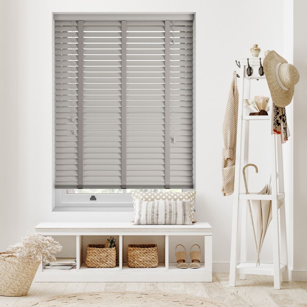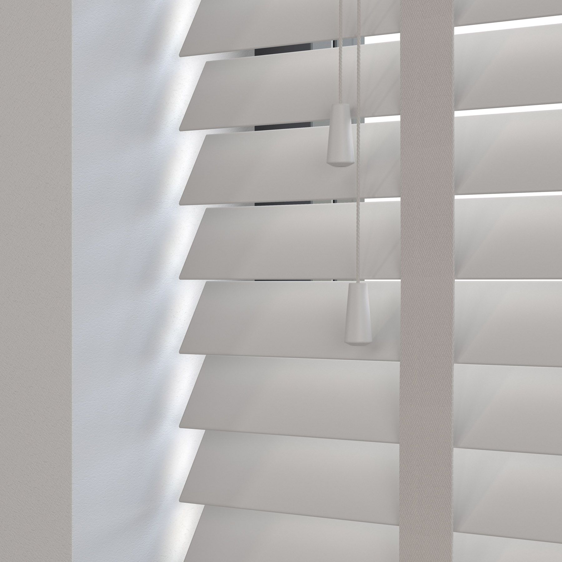 Enhance your space with the Soft Grey Taped Real Wood Blind, meticulously crafted for those who value both style and functionality. This exceptional blind is fashioned from real wood, giving it a robust and elegant finish in a soothing grey matte that completes any room it adorns. Designed to fit beautifully in a variety of settings, including bedrooms, dining rooms, living rooms, and offices, it is particularly well-suited for both bay and standard windows. The blinds' 50mm slats provide optimal light filtering, ensuring privacy while still allowing gentle light to permeate, creating a warm, inviting atmosphere. Additionally, the taped design not only adds a polished look but also enhances durability, maintaining the blind's pristine appearance. Easy to wipe and waterproof, this wooden blind promises ease of maintenance, making it a practical addition to your decor.